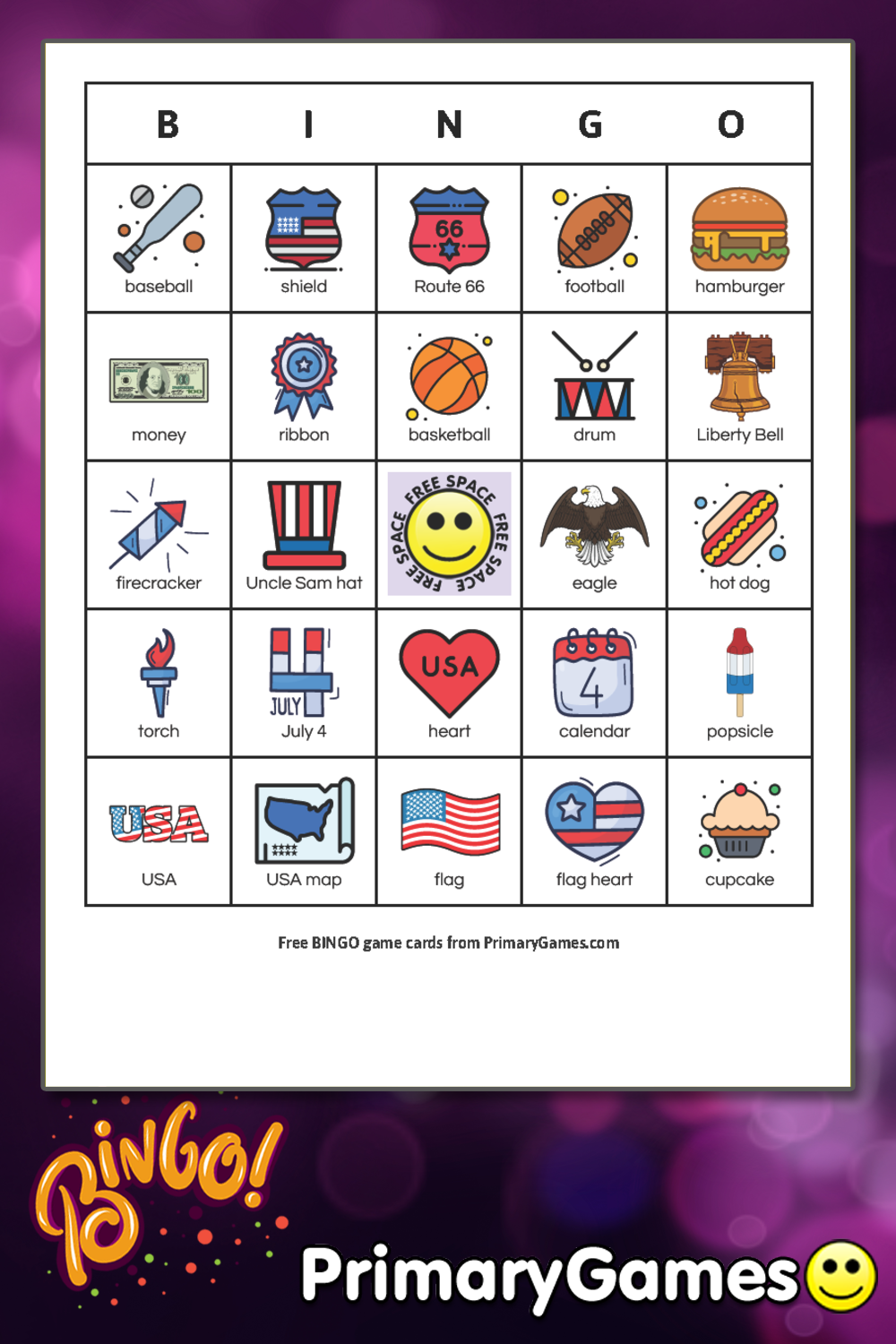 Fourth Of July BINGO Game Card • FREE Printable Game From PrimaryGames